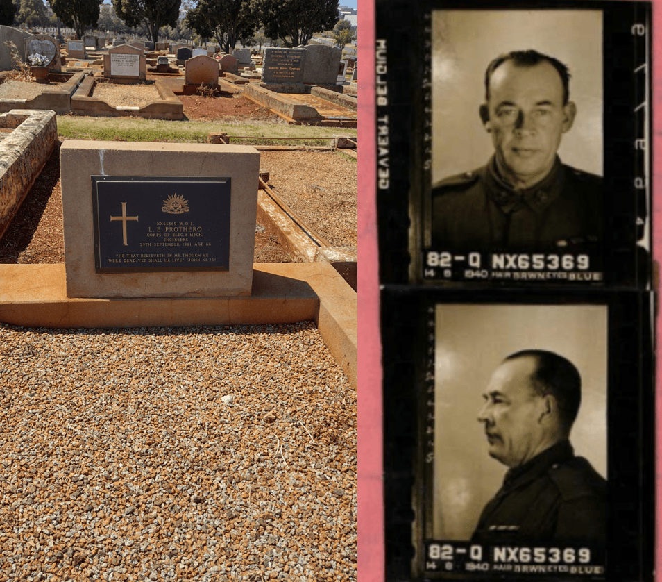 The state of their marriage becomes clear in 1939 when Leslie enlists for service in the AIF on 12 October in North Sydney. He lists Sadie as his wife but her address as unknown. His attestation papers record his date of birth as 2 April 1900, cutting five years from his age and bringing him under the age of 40 so he is able to enlist. After a year’s service in Sydney with the 2nd Battalion, Leslie embarks for Egypt on the 27 December 1941. During his service in Egypt and the Suez Canal the area was under constant threat by the Germans. The only thing stopping the capture of the canal are the Rats of Tobruk who hold onto the garrison of Tobruk despite constant bombardment between April and December 1941. During his service in Egypt, on 27 November 1941, Leslie’s eldest daughter Doris Prothero dies in Balmain Hospital. She is 22.