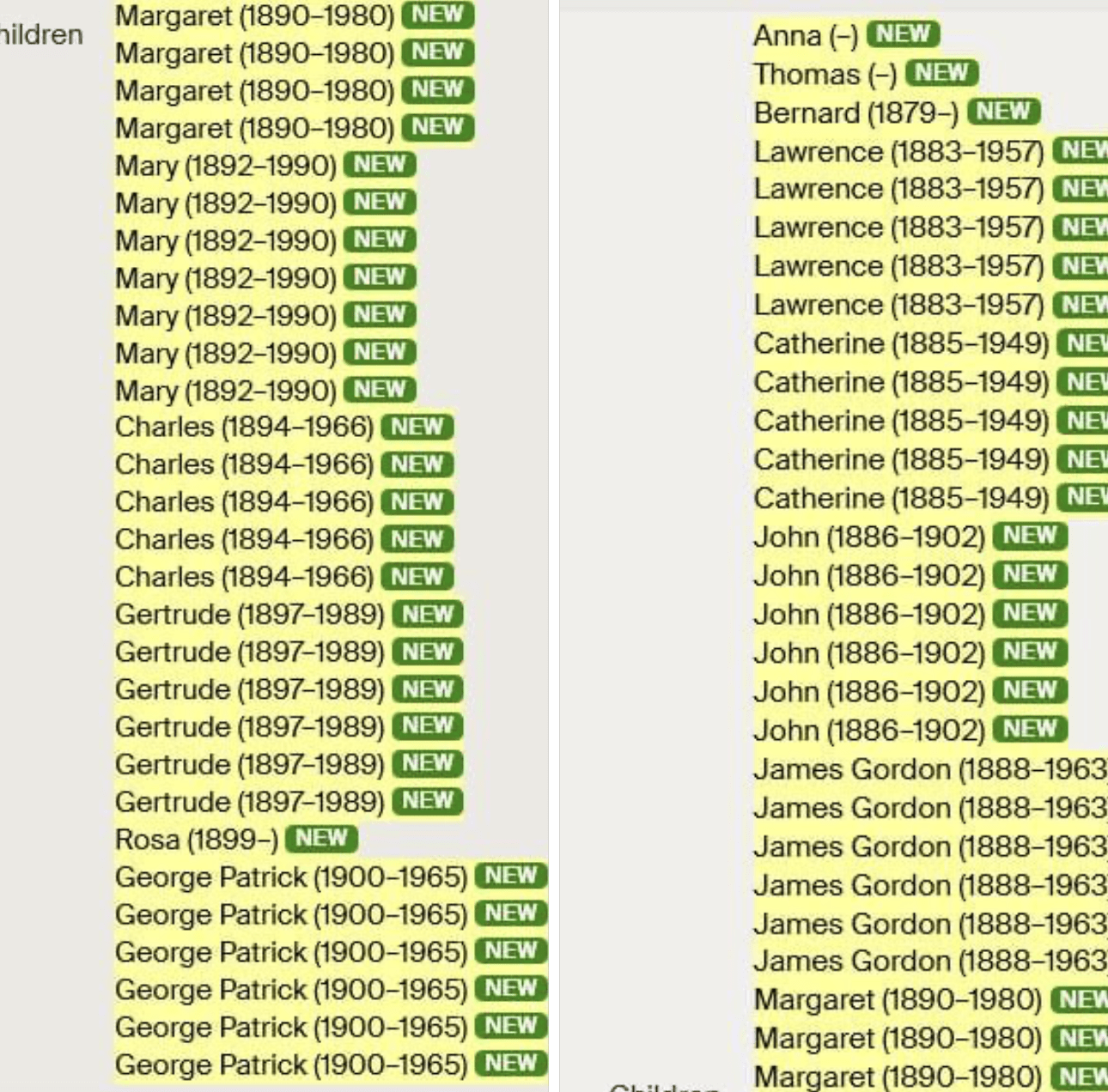 I recently saw a post in a Facebook group showing an Ancestry tree hint for a family. The post’s author said he had clicked on a hint and received a list of nearly 60 children associated to one couple. This list came from an Ancestry member tree.