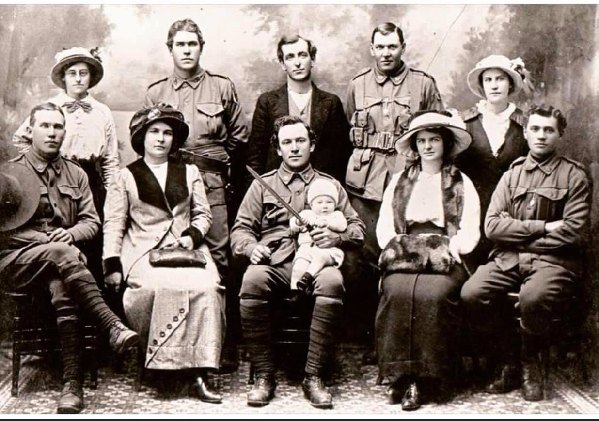 It is a picture of farewell, anticipation and fear. On the eve of leaving for war, the small community of Hickeys Creek in New South Wales are sending their men to a distant conflict. With the newly enlisted soldiers are their friends, sisters, wives and girlfriends. Baby Neville Fuller sits on his uncle’s lap.